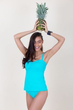 Kinézetét tekintve egy normál tankini, merevítő nélküli, szivacsos. Széles, rugalmas állítható vállpántja kényelmes viseletet biztosít. Különleges, rejtett belső zsebe megfelelő és stabil tartást nyújt az emlőprotézishez.
